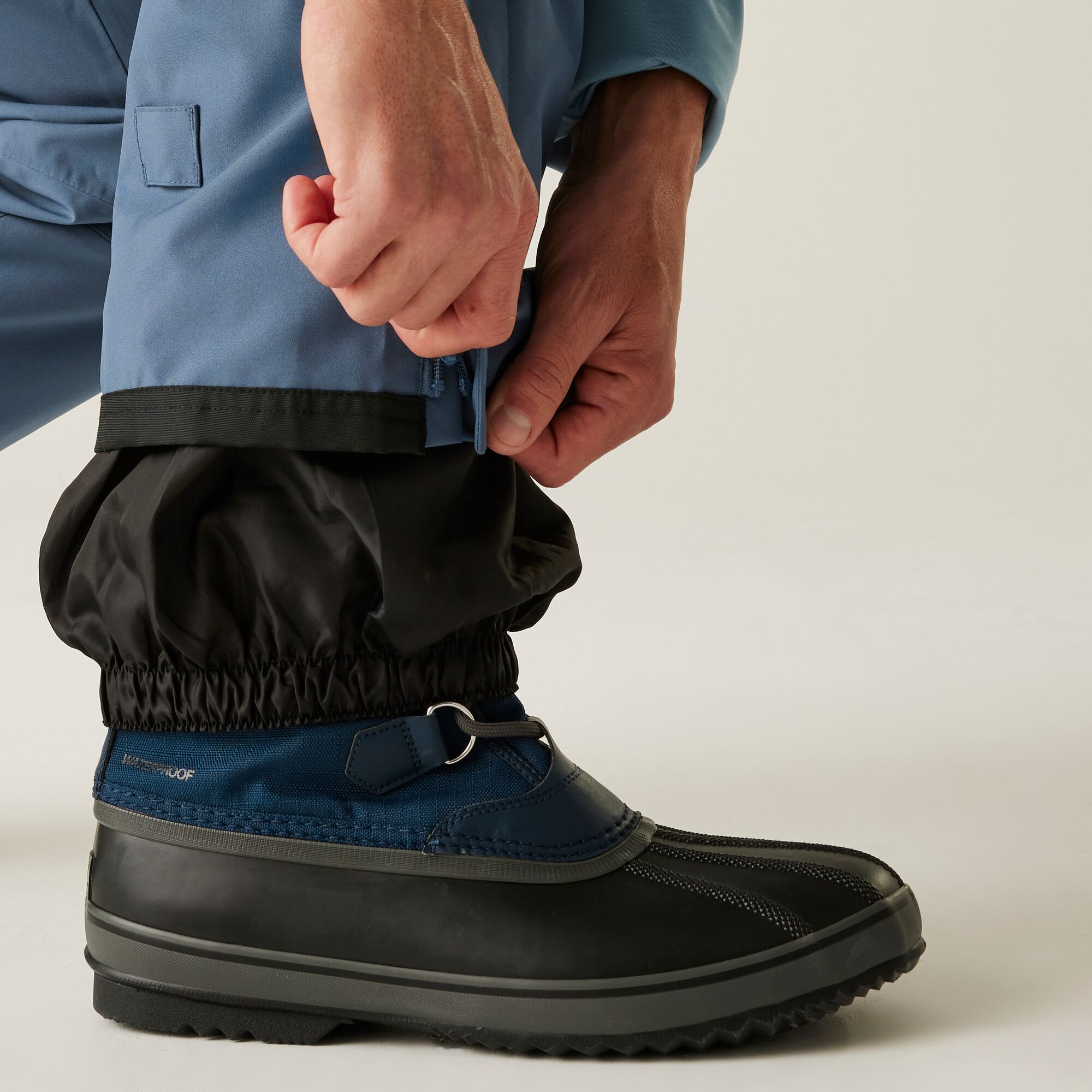 - Tab up hem for when boots are off